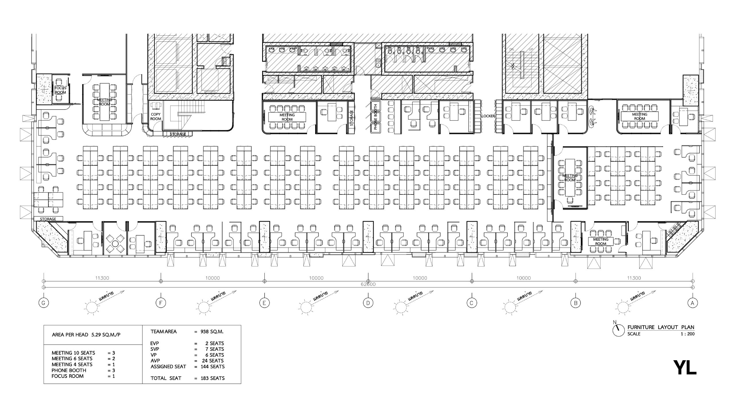 • พื้นที่ที่ได้รับแสงธรรมชาติถูกจัดไว้สำหรับที่นั่งหลักเพื่อเพิ่ม Productivity